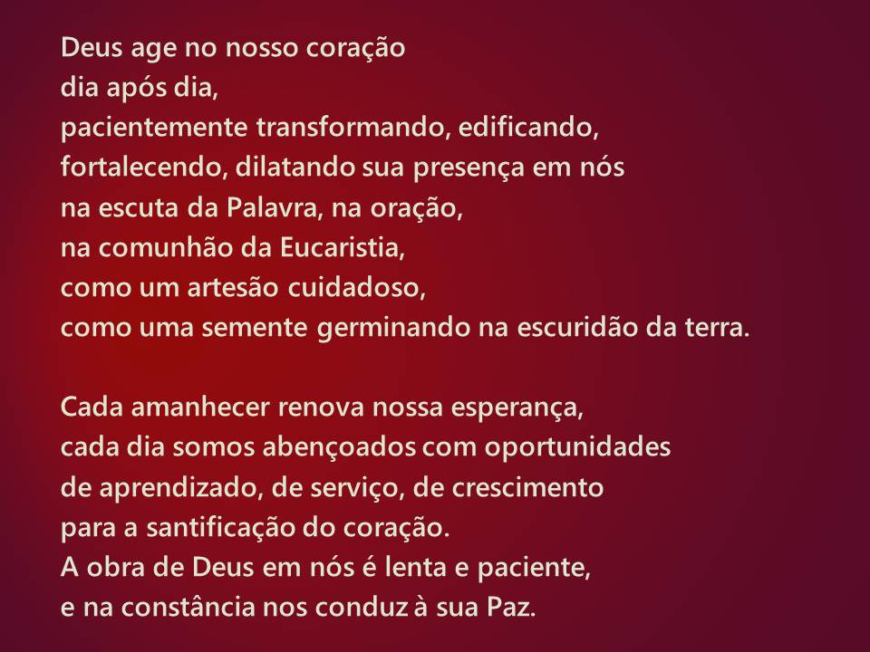 A obra de Deus em nós é lenta e paciente,