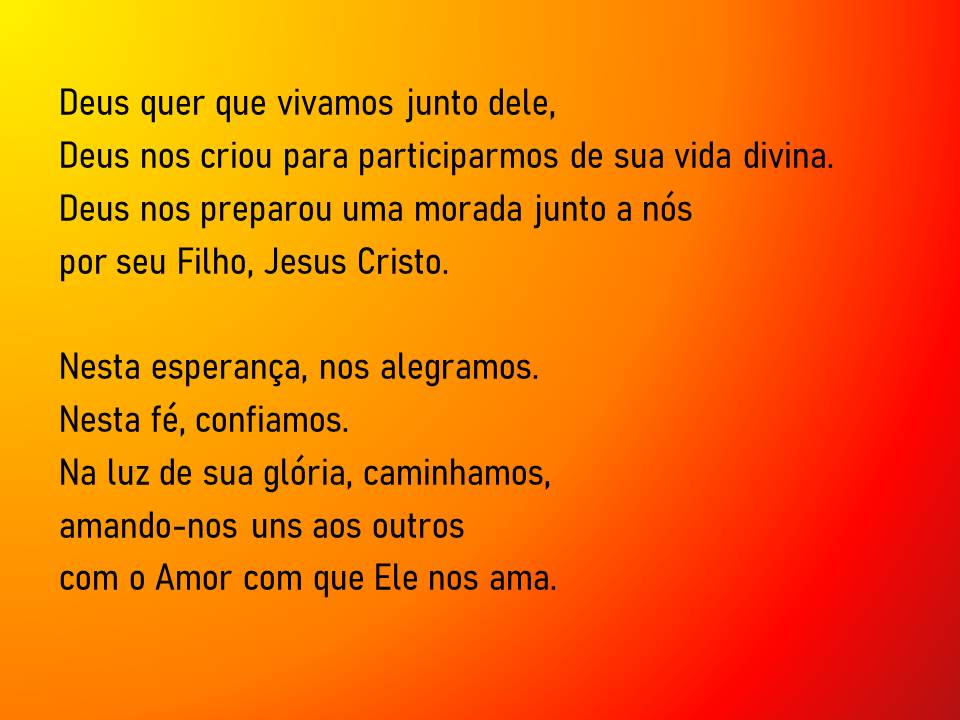 “Se somos filhos, somos também herdeiros – herdeiros de Deus e coerdeiros de Cristo; se realmente sofremos com ele, é para sermos também glorificados com ele. Eu entendo que os sofrimentos do tempo presente nem merecem ser comparados com a glória que deve ser revelada em nós.” (Rm 8,17-18)