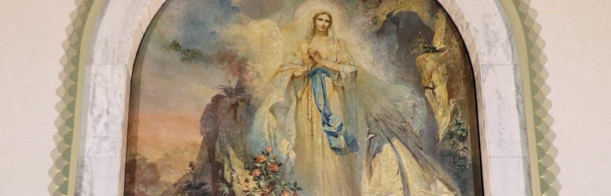 contemplando a imagem de Nossa Senhora de Lourdes